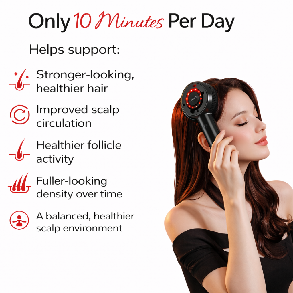 650nm red light penetrates the scalp, stimulating follicles and boosting circulation.